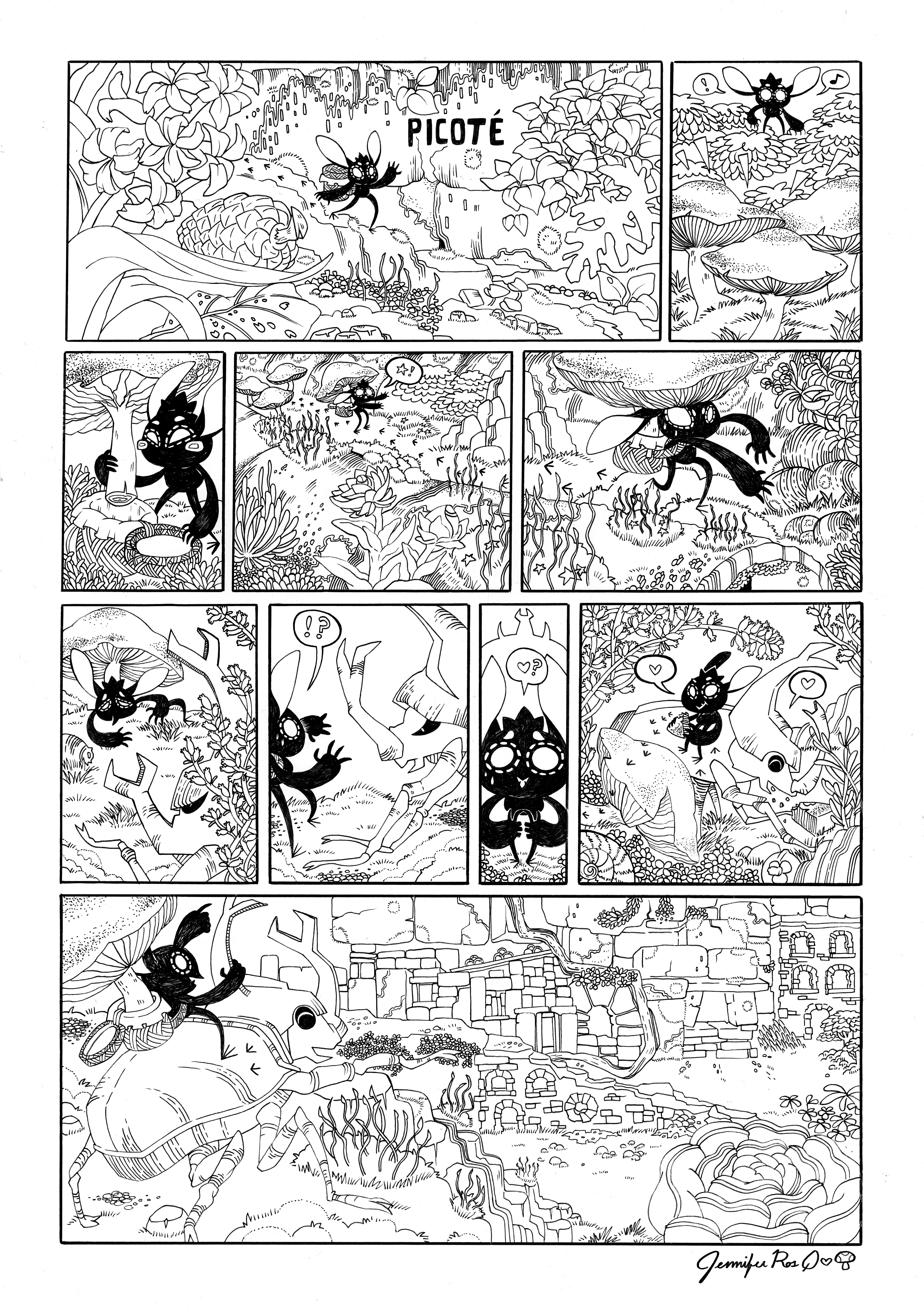 A one page comic, inspired by my time in the south of France. I like to imagine this little guy, wandering around in the leaves, trying to find something to eat.