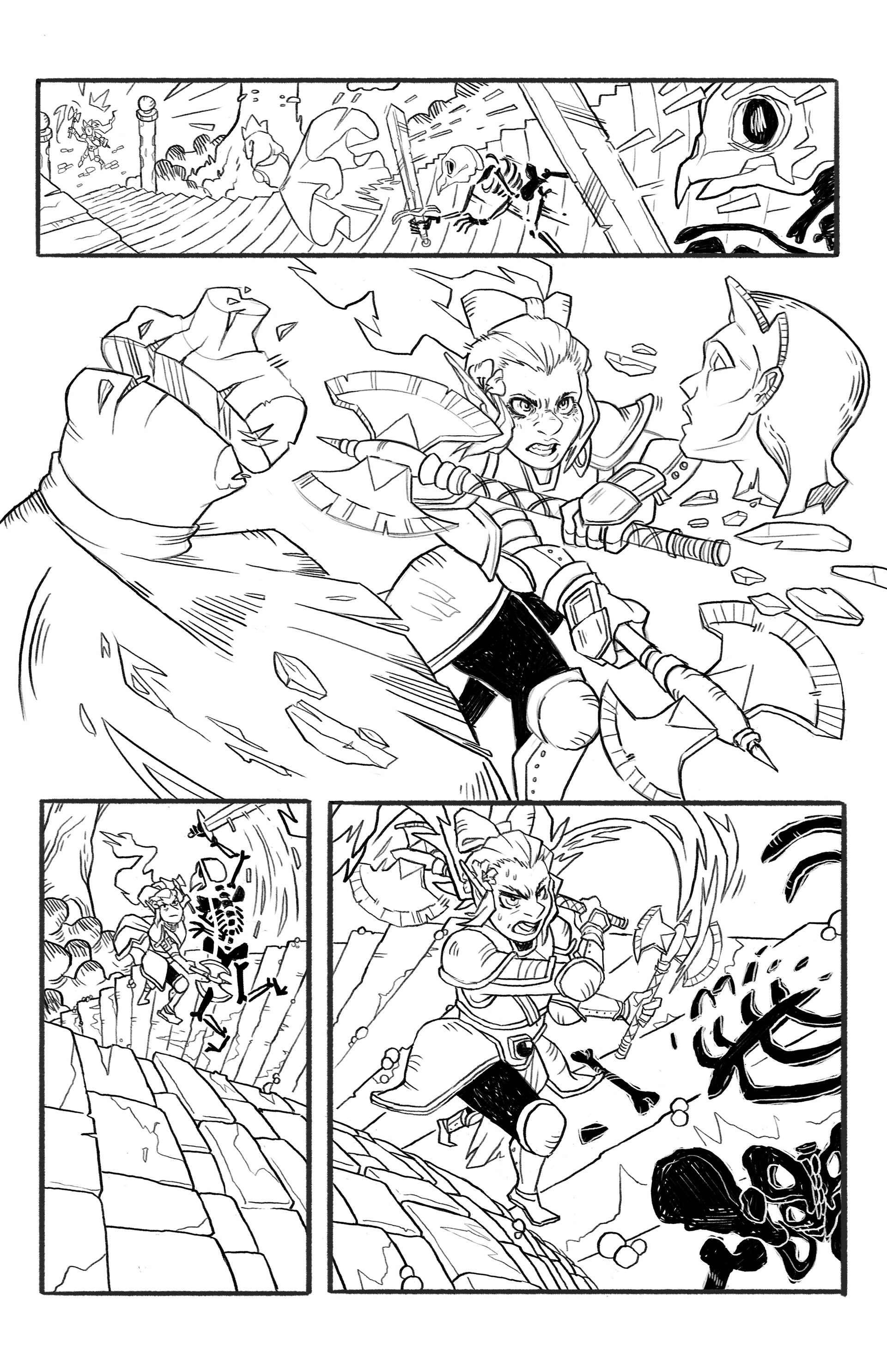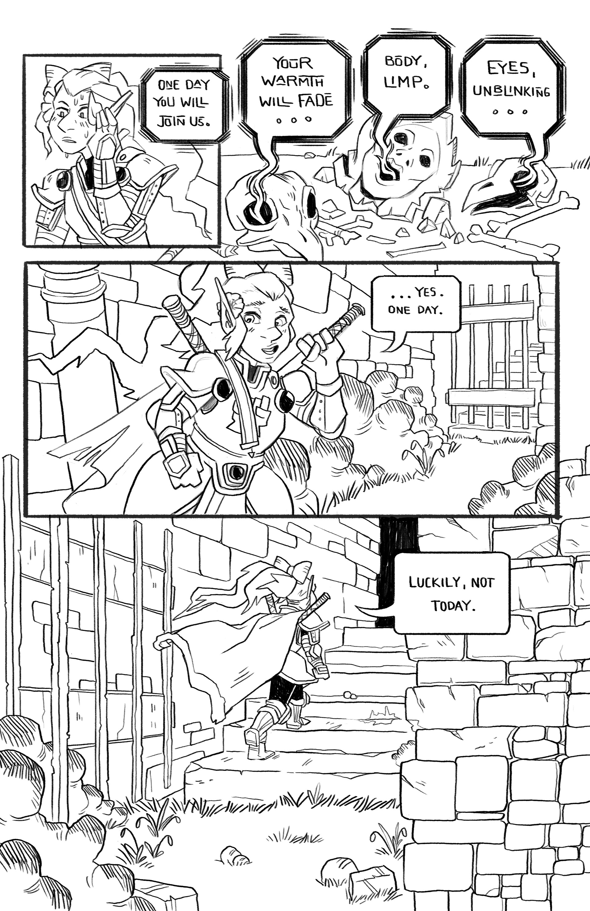 The pencils for a 3 page comic. It's about a Paladin named Poppy, just trying to help. Highly inspired by Jake Wyatt. I mean, what a guy, am I right?